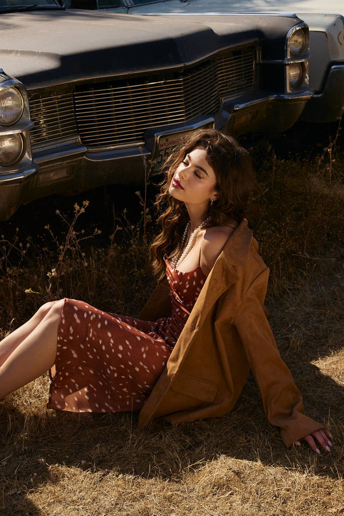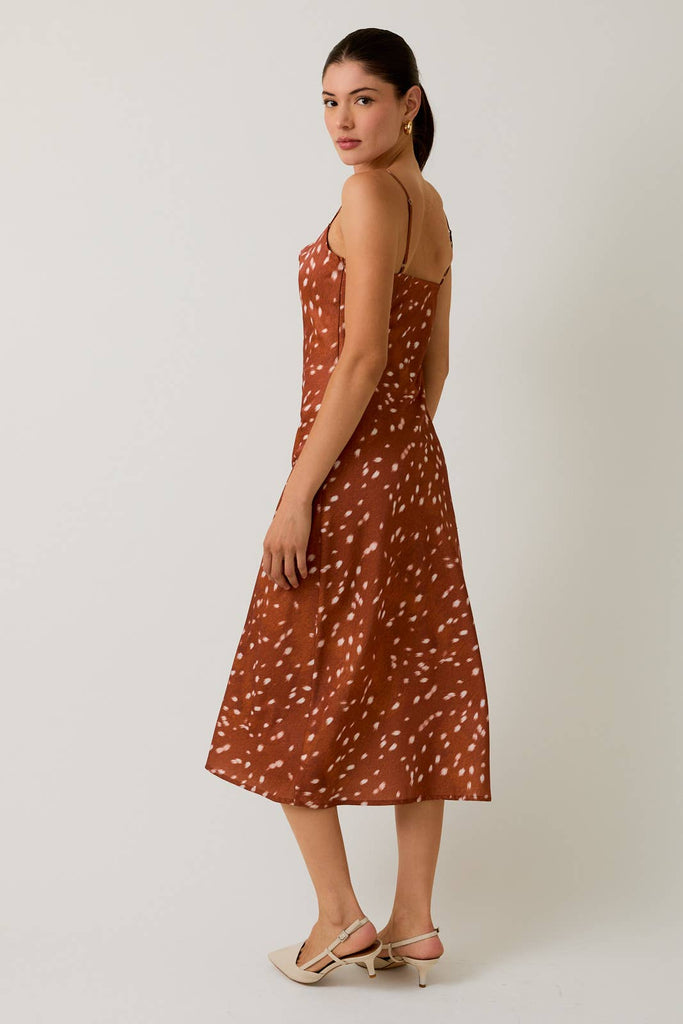 Cowl Neck Slip Midi Dress: Brown & White Animal Print