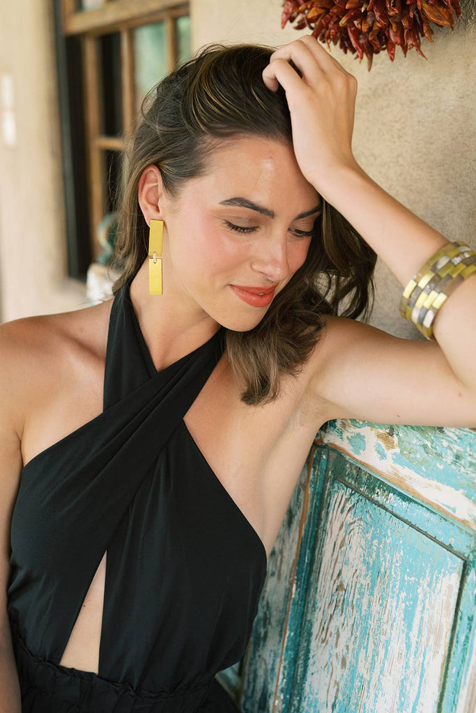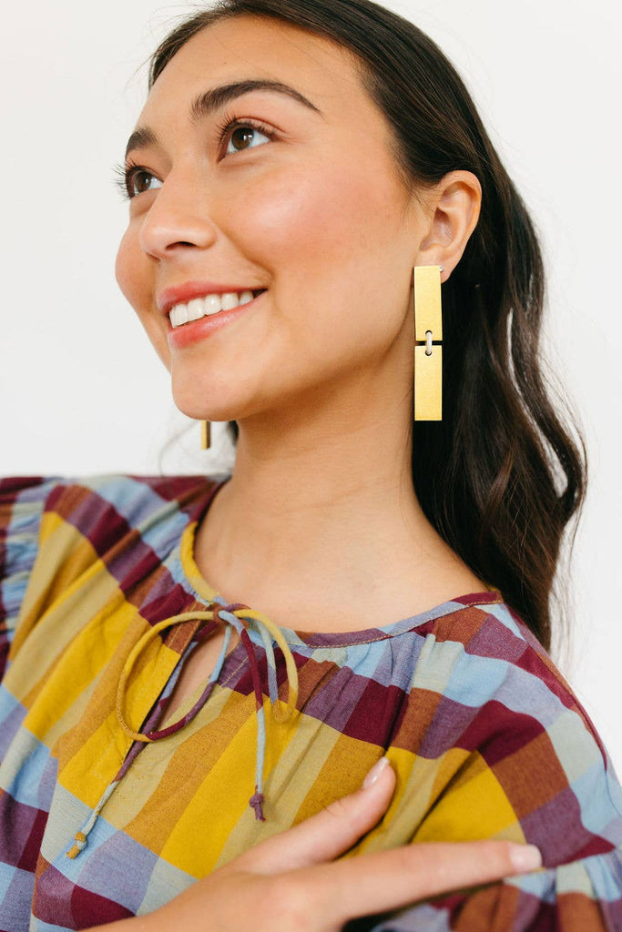 A subtle touch of gold glitter is great for every day or evening. In our new fun and geometric style, the Isabelle Gold Earrings is sure to be a go-to for season after season.